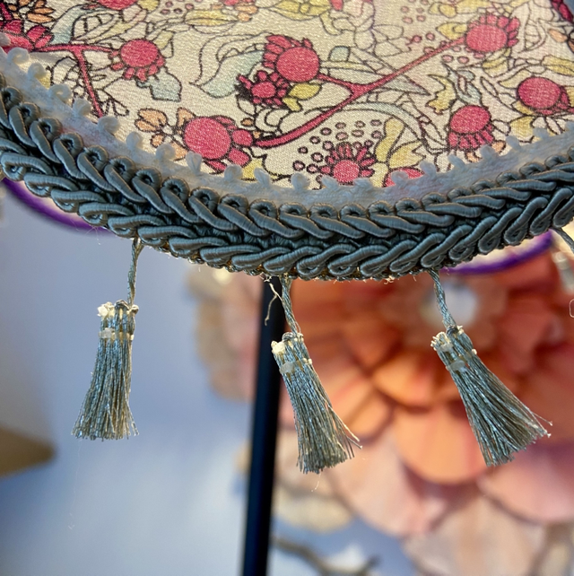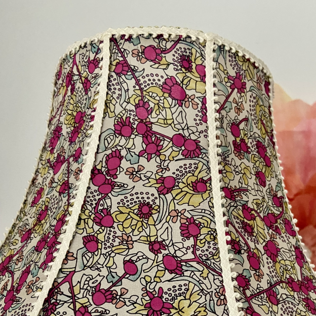 Abat-jour GLAMOUR, forme rétro, magnifique tissus soie fleurie.