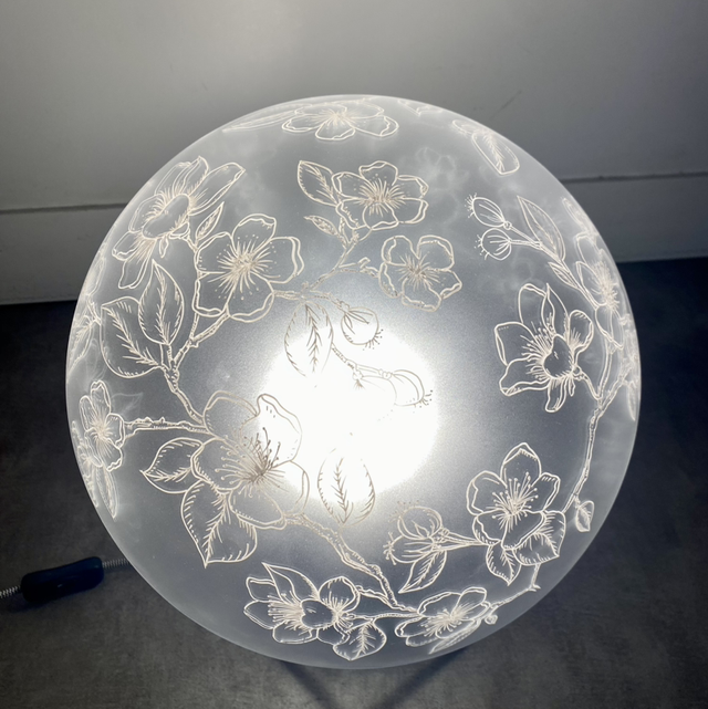 Lampe LE GLOBE en verre, graphisme fait main.